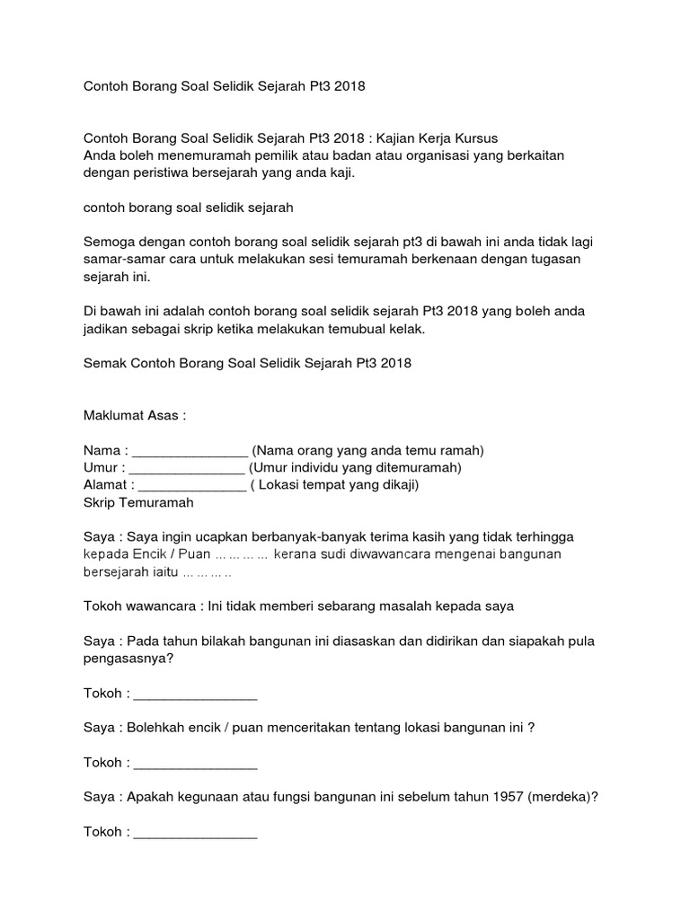 Contoh Borang Soal Selidik Sejarah Pt3 2018 Pdf